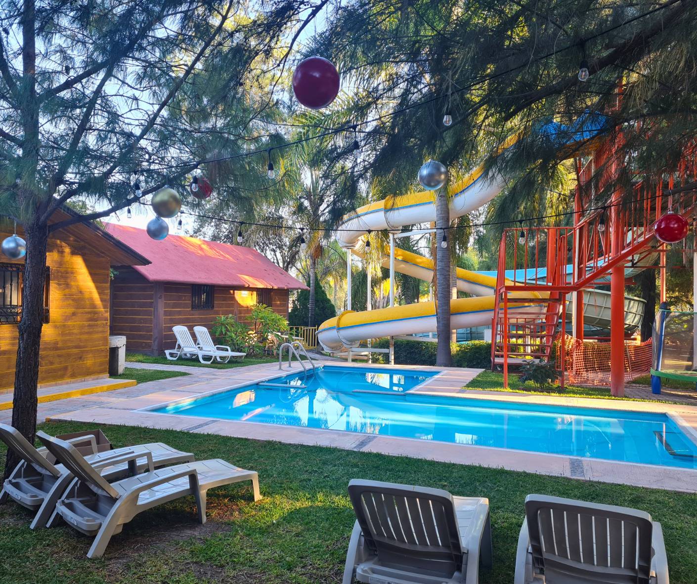Todas nuestras cabañas se encuentran dentro del parque, ideales para familias, parejas o grupos que buscan descansar, convivir y disfrutar del balneario sin salir del lugar.